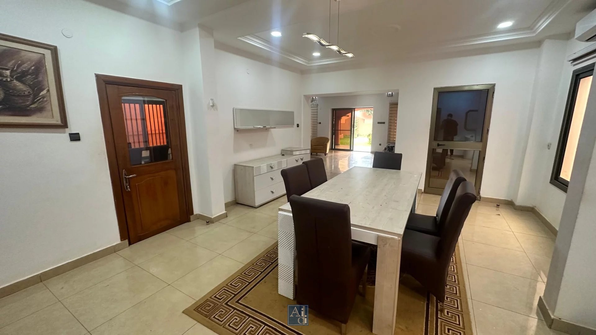 – 3 Salon – 4 chambres – 1 Salle a manger – 1 cuisine – 1 Buanderie – 1 piscine – 1 jardin – 1 forage – 1 garage pour 3 véhicules – 1 générateur – 1 paillote